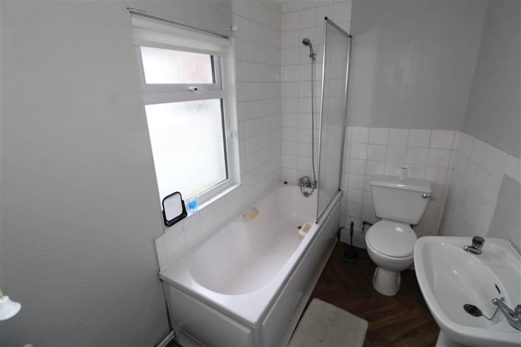- Partially tiled bathroom with white suite comprising of a panelled bath & shower over, low flush wc & pedestal wash hand basin.