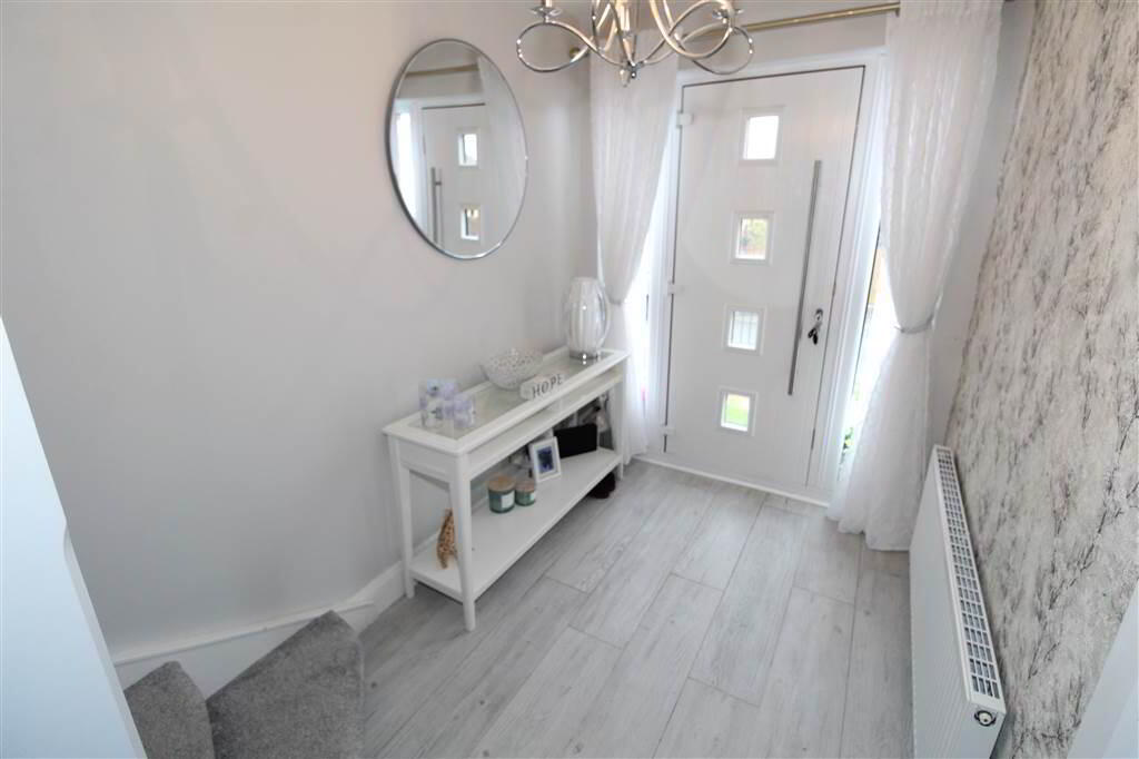 - Welcoming entrance hall with grey ceramic wood effect floor tiles.