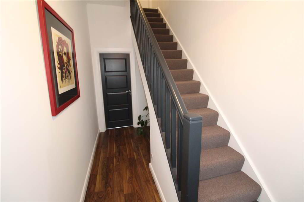 - Welcoming entrance hall with laminate flooring and carpet on stairs.