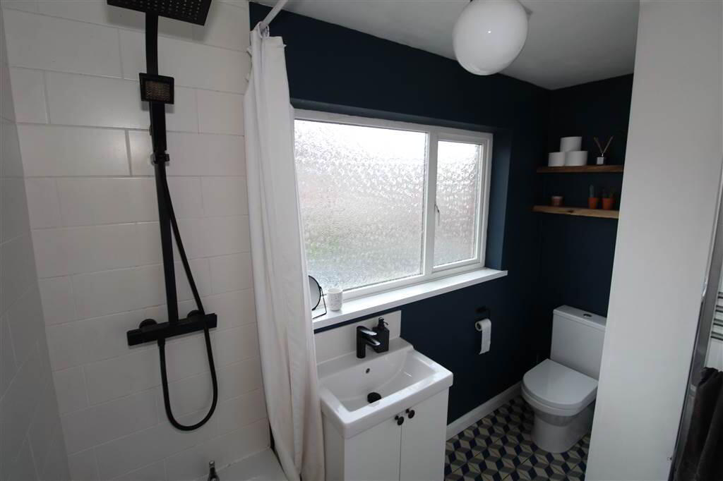 - Bathroom with white suite comprising of a panelled bath with thermostatic shower over, low flush wc & vanity sink unit and finished with tiloed flooring.
