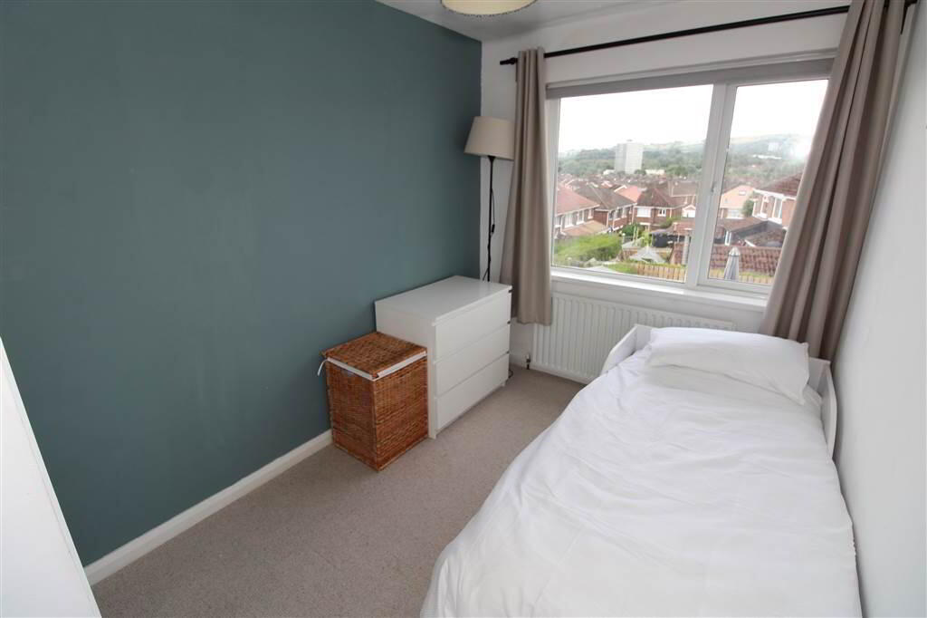 Bright bedroom with carpet flooring. - BEDROOM (3):