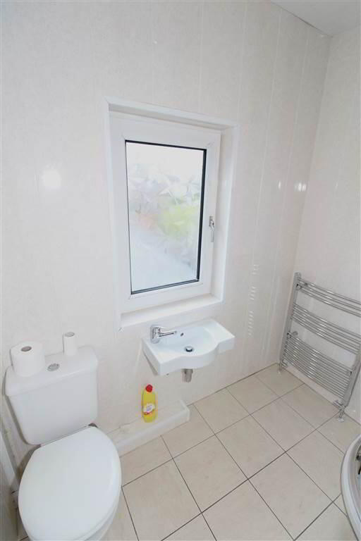 - Shower room consisting of a low flush wc, wall mounted basin, heated towel rail and shower cubicle.
