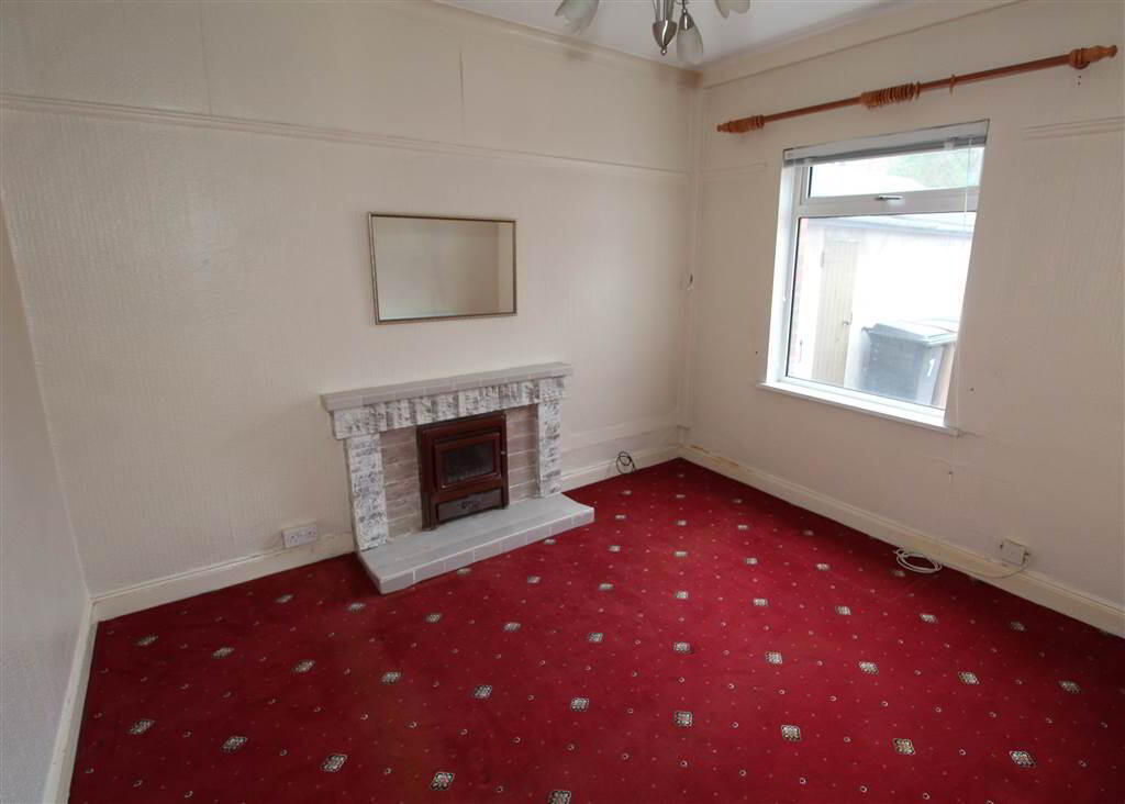 Living room with open fire and carpet flooring. - DINING ROOM:
